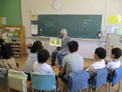 5月のお話会がありました。牧先生にたくさんの絵本の読み聞かせをしていただきました。今週から運動会の練習が始まり、どの時間もどこかの学年が練習に行っています。今日のお話会も全員ではなく、1・2校時に練習がなかった学年で行いました。他の授業も、なかなかいつも通りにはできませんが、子どもたちは運動会に向けて、緊張しながらもがんばって練習をしています。