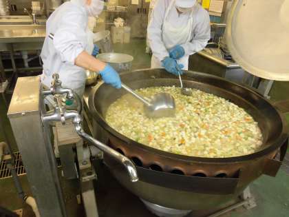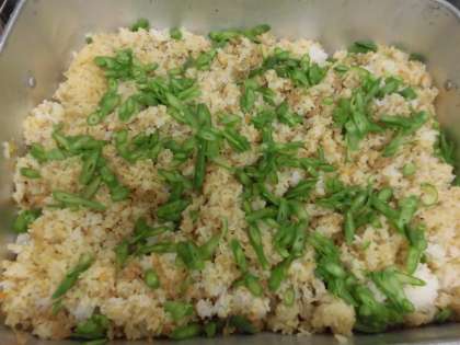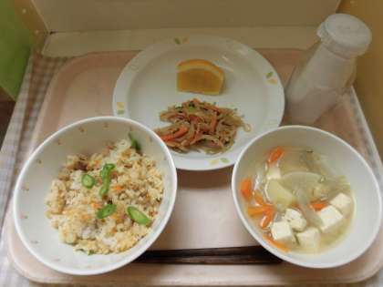 ☆今日は『とびうおのそぼろご飯』です。とびうおは東京都八丈島産を使用しています。子どもたちが食べやすいように、とびうおがミンチにされて納品されます。そのとびうおを使用し、人参ととびうおを炒め生姜 醤油 砂糖 酒 で味つけを行い、ごはんに混ぜて提供しみんなに食べていただきました。