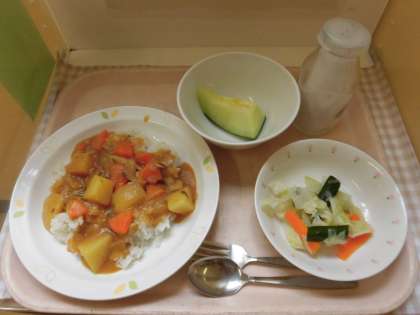 ☆今日の果物は『メロン』です。これから旬になりますが、本校では今年はじめて給食に出しました.熊本県から取り寄せした甘くてジューシーなメロンを子ども達に食べていただきました。