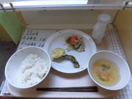 ☆今日の給食は『お茶漬け』です。ごはんに だし汁をかけてサラサラと食べられる献立です。また 天ぷらはだし汁につけて食べても美味しくいただけます。