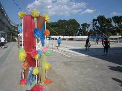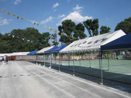 明日は真夏日になるということで、暑さ対策として、ミストや児童用のテントの設置を行いました。ラインも新しく引き直し、表示をし、環境を整えました。暑い中ですが、子どもたちはがんばると思います。ご声援をお願いします。すべての競技は行えませんが、子どもたちの安全のため、ご理解の程、よろしくお願いします。