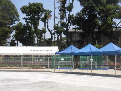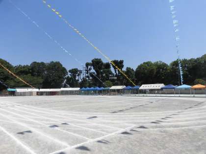 今日は暑い中、運動会にお越しいただき、ありがとうございました。今回は暑さ対策のため、児童席にテントを設置しました。このテントは、近隣の佼成幼稚園、上祖師谷中学校、上祖師谷まちづくりセンター、そして烏山サッカークラブの皆様が烏山小学校のために快く貸してくださり、設置することができました。このテントのおかげで、直射日光から子どもだちを守ることができ、運動会を開催することができました。引き続き、火曜日も子どもたちの安全のために使わせていただきます。ありがとうございました。