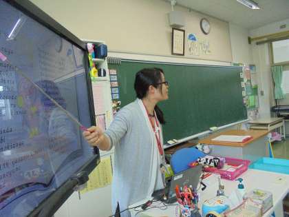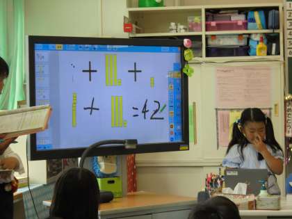 この日の5校時に、2年2組が算数「たし算のひっ算」でICTを活用した授業を行いました。