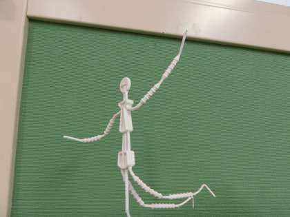 6年生は、紙粘土を使って作品づくりを始めました。まずは、アスリートになった自分を想像しながら「もしもオリンピック・パラリンピックに選手として参加することができたとしたら・・・どんな競技に挑戦したいですか?」と書かれたワークシートにイメージ画を描いた後、ラジオペンチを使って、心材と土台づくりに取り組みました。