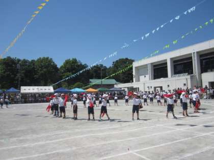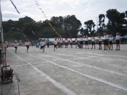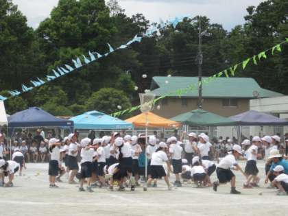 1年生は、「とんで!まわして」、「玉入れ」、「50m走」を行いました。飛び跳ねたりスカーフを回したりして、楽しく踊りました。玉入れの途中には踊りがあって、かわかったです。