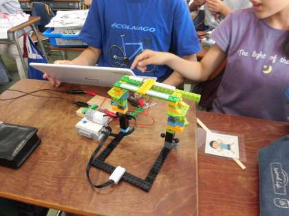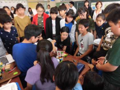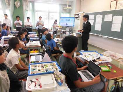 5校時に6年2組が研究授業を行いました。理科「電気と私たちの生活」で「電気を効率よくつかっているものを再現しよう」をめあてにプログラミングを活用して、ものづくりをしました。グループで試行錯誤しながら学習をすすめました。プログラミングを通して、身近なものの働きや工夫を知ることができました。