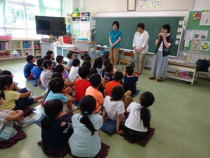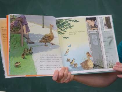 子守泥棒は、赤ちゃんをあやす言葉がたくさん出てきて、子ども達も一緒になってあやすふりをしながらお話を聞くことができました。