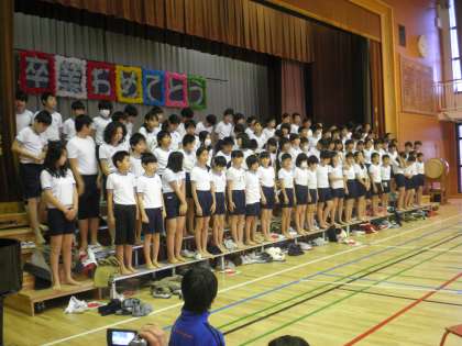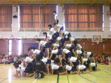 6年生は、みんなで協力して取り組んだ、組体操の全員ピラミッドを披露してくれました。みんなで協力し、努力することの大切さをみんなに教えてくれました。
