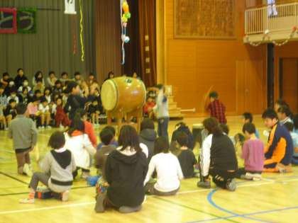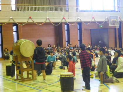 つくし学級の出し物は和太鼓です。みんなとてもかっこよくたたいていました。
