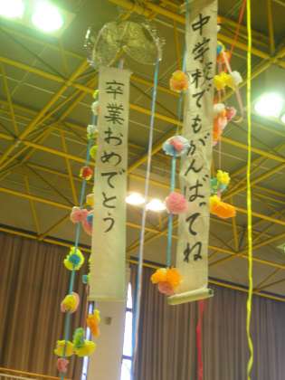 3/3 6年生を送る会2 くす玉わりと校長先生のお話