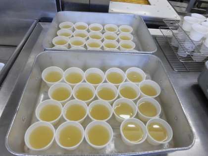 ☆今日のデザートは『梅ゼリー』です。梅ジュースを使ってゼリーを作りました。今は梅が旬で、スーパーでも多く見かけます。梅の酸味の成分は疲労回復に効果がある「クエン酸」です。今日は手作りの梅ゼリーを子ども達に食べていただきました。