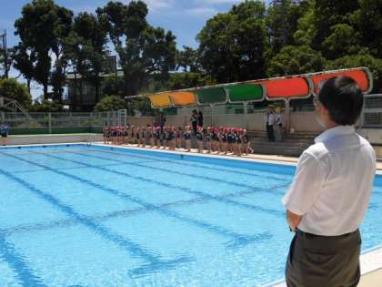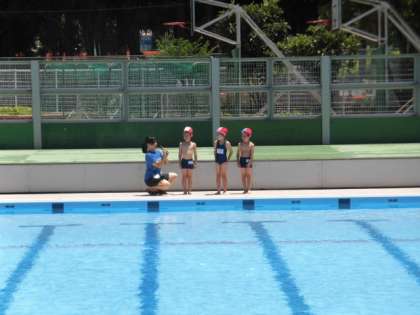 1年生は、17日にプール開きをしました。初めてのプールにわくわくしながら、先生のお話を聞きプールでのルールを知ることができました。代表の児童は大きな声でめあてを発表することができました。