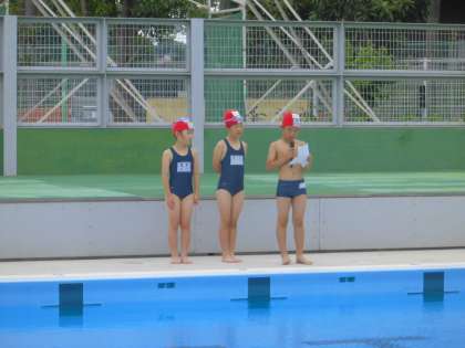 最後に学年の先生から3年生の目標を伝えました。3年生は自由泳法で15〜25メートルを泳ぐことができるようにがんばっていきます。
