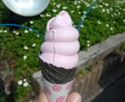 14時40分、書いた葉書を近くのポストに投函した後、季節の花がたくさん咲いている大石公園でソフトクリームを食べました。ここはブルーベリーで有名です。ブルーベリーのソフトクリームを食べました。