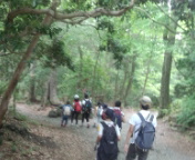 10時、氷穴から紅葉台、三湖台に向けてのハイキングに出発しました。雷雨の予報のため、風穴に行くのを止めて早めにハイキングウを終える予定です。子どもたちは頑張って登り始めました。