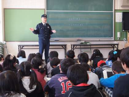 今日は、駐在所のお巡りさんを招いてお話を聞きました。
