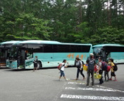 13時20分、予定通り学校に向けてバスは出発しました。渋滞等なければ、15時過ぎに到着するでしょう。3日間の移動教室は、天気が心配されましたが、予定通り実施できました。子どもたちも他校の友達と楽しい思い出ができたことでしょう。無事終了することができると思います。このホームページを見ながら、思い出話を聞いてください。
