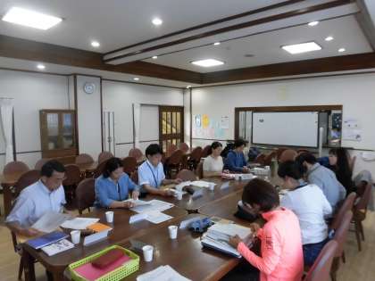 この日の17時から、第2回学校関係者評価委員会を開きました。令和元年度の設問項目を検討するのが今回の議題でした。