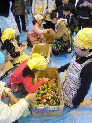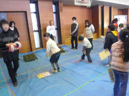 また、烏山小学校の先生たちは、輪投げゲームをやっていました。