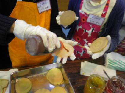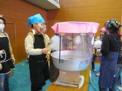 食べ物屋さんでは、綿あめ、ソフトせんべい、ジャムサンドのお店がありました。