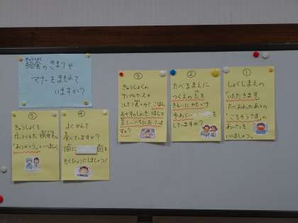 栄養士さんからは、食事のきまりやマナーについてお話していただきました。