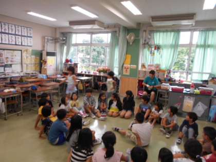 昼休みにたてわり班活動が行われました。涼しい中で、校庭、屋上、体育館と教室でそれぞれの班が元気いっぱい遊びました。6年生も進行が上手になってきました。時間を分けて2つの遊びを行うなど、どうしたら下級生に楽しんでもらえるかをよく考えて協力しています。
