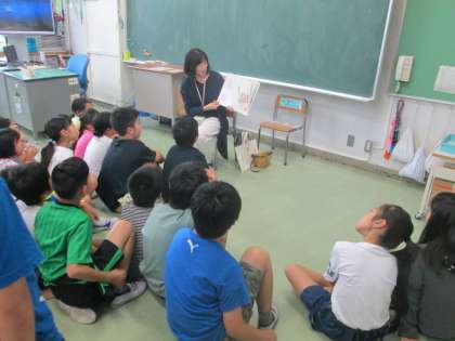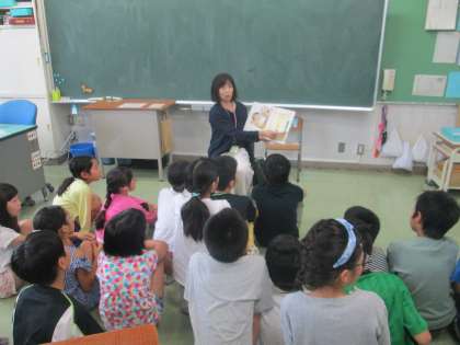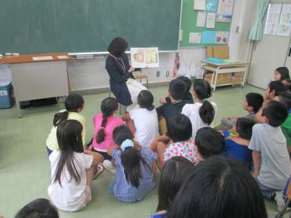 「もっちゃう もっちゃう もう もっちゃう」という本を読んでいただきました。子どもたちは、「その本知っている。」と反応したり、話の途中でおもしろいところがあると笑ったり、楽しそうに話を聞いていました。いろいろな話を聞き、本に興味をもってたくさん読んでほしいなと思います。