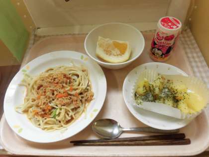 ☆今日は1学期最後の給食です。今日の給食は『冷やし中華』です。冷やし中華のタレは、練りごま入りのごまだれです。具には低脂肪・高たんぱく質の鶏ささみを使用しています。濃厚なごまだれと ささみがとても合います。今日は1学期最後の給食なので、牛乳の代わりにジョアの提供になっています。
