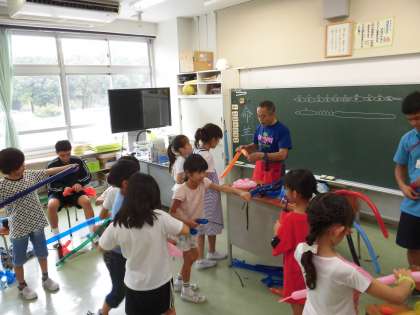 本日は「茶道」「手芸」「外門の大きな絵」「空間ワークショップ」「バルーンアート」「てつどう教室」「硬筆」の7教室が行われました。