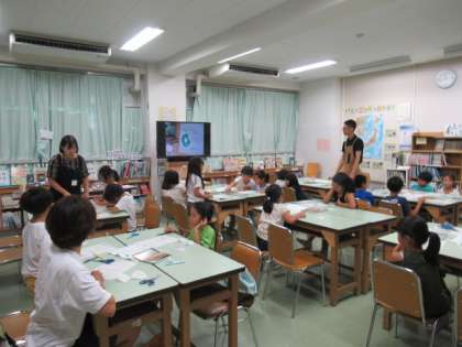 図書館開放で、「科学工作会」が開かれました。前半は、「UVトンボづくり」、後半は、「ペーパークロマトグラフづくり」でした。科学の不思議を感じながら作っていました。楽しく勉強になる催しで、子どもたちは、喜んでいました。雨でプールが中止になったので、この工作会があってよかったようでした。