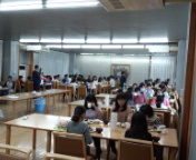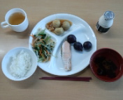 今日の朝食からビレッジの中の食堂での食事になります。食事係が準備して、いただきますです。川場村名産の飲むヨーグルトがでました。