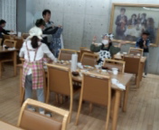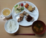 17時50分、川場移動教室2日目の夕食の時間になりました。食事係が、それまでに用意します。食材は、川場産、沼田産、利根郡産など、地元でとれたものを使っています。今日の夕食では、川場産のものは、ご飯とりんごジュースでした。