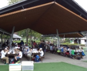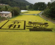 11時30分、田園フラザに到着しました。途中見た「たんぼアート」には感激!小雨になりましたが、村めぐりでは雨に降られずよかったです。