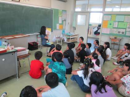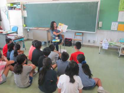 「11ぴきのねことあほうどり」「11ぴきのねことぶた」の二冊の本を読んでいただきました。子どもたちは、話の途中でおもしろいところがあると笑ったり、楽しそうに話を聞いていました。いろいろな話を聞き、本に興味をもってたくさん読んでほしいなと思います。