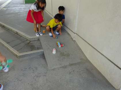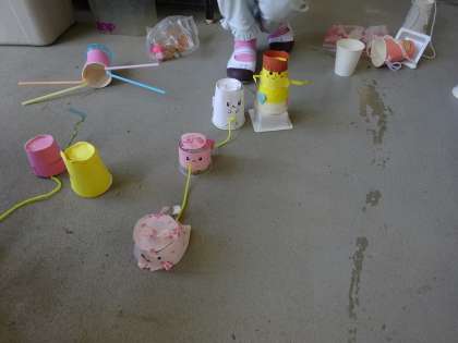 今日は、作った作品にコロコロエンジンをつけて、坂道を転がして遊びました。