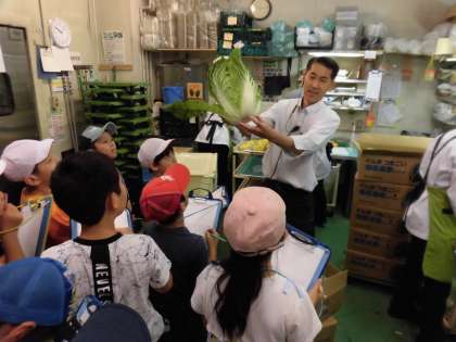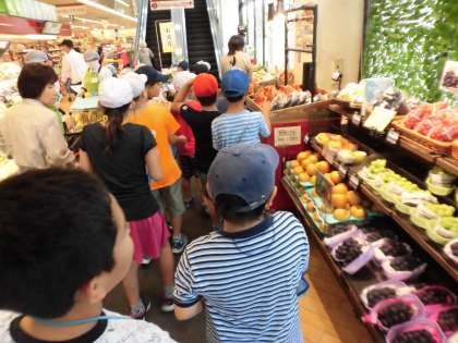 この日は、烏山小の子どもたちがよく行く地域のスーパーマーケットに見学に行きました。店長さんや従業員さんの清々しいあいさつの声に子どもたちも「こんにちは。よろしくお願いします。」と元気にあいさつを返してのスタートになりました。