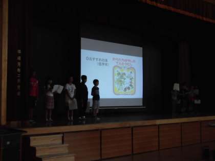 9月9日〜20日を「読書旬間」と定め、読書の意欲喚起を進めています。その取組の一環として、図書委員がおすすめの本を紹介したり、絵本の読み聞かせに取り組みました。