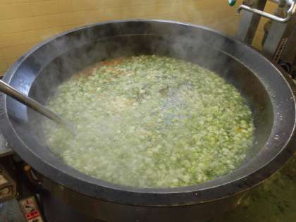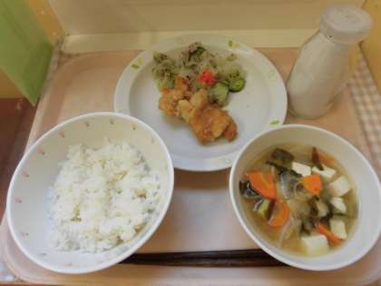☆今日の献立は『鶏肉の南蛮ソースがけ』です。給食室で、カラっと揚げた鶏肉に長ねぎが入った甘酢だれをかけていただきました。