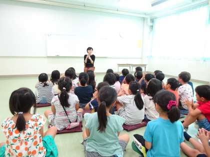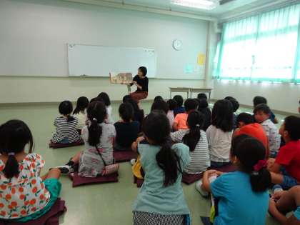 2学期も、おはなし泉の方に来ていただき、素敵なお話の世界に連れて行ってもらいます。今日は、2年生が2学期最初のおはなし会でした。