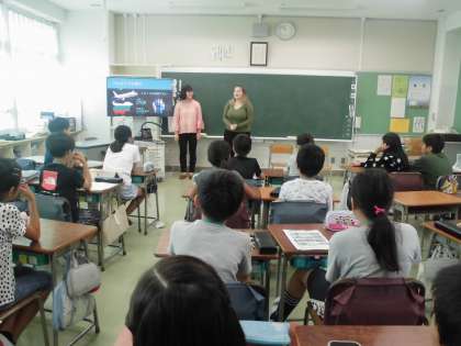 どのクラスもテンプル大の学生さんに英語でお話いただき、昭和女子大の学生さんに通訳してもらいました。