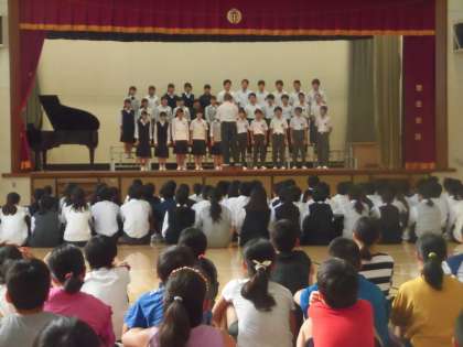 5・6年生が上祖師谷中に行き、合唱祭リハーサルを見学しました。2年生の課題曲である「時の旅人」の発表を聞きました。中学生の真剣な姿に感化されたのか、いつも以上に集中していた高学年児童でした。