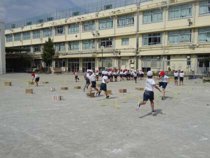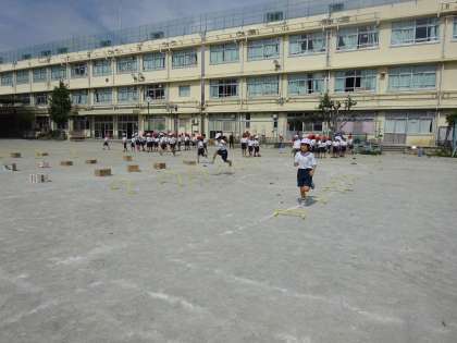 ミニハードルや段ボール、ケンステップ等をリズムよく走りこす子ども達。どの子もとても楽しみながら学習することができました。
