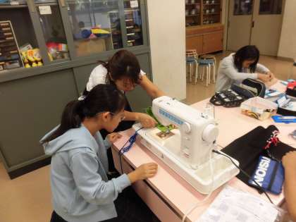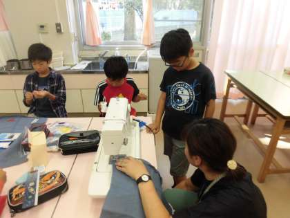 裁縫ボランティアの保護者の方々に、主にミシンの操作について丁寧に教えていただきました。子どもたちはより多くの大人の見守りを受けて、安心して学習を進めることができていました。