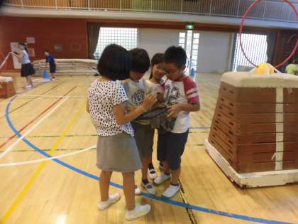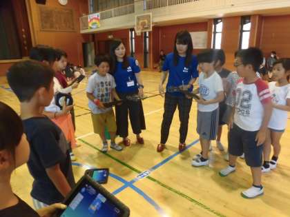 学校運営委員会さん主催によるキッズドローンプロジェクトが行われました。生活の中にあるプログラミングとプログラミングの仕組みを学んだ後、ドローンを動かすプログラミングをグループの友だちと協力しながら行いました。目的のフープにたどり着くためにドローンに指示を出します。実際にドローンを動かしてみると誤差があることに気付きます。何度も試行錯誤しながらドローンを動かす姿に、烏山の子ども達の問題解決への意欲を感じとてもうれしかったです。