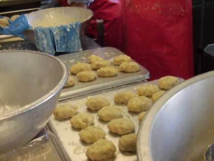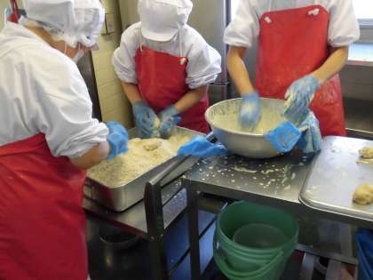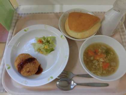 ☆今日の給食は『手作りコロッケ』です。じゃがいもをつぶし みじん切りにした野菜を混ぜ、たわら型にし、1つ1つ丁寧に揚げました。子ども達は、コロッケをパンに挟んでコロッケサンドにして食べていました。