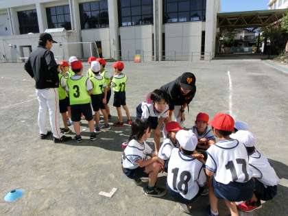 ベースボール型のゲームを行いました。チームワークを意識して、できたと思います。「前よりも野球が好きになった。」と感想をもった子どもがいました。とても良い経験ができたと思います。ジャイアンツアカデミーのコーチの皆さん、ありがとうございました。