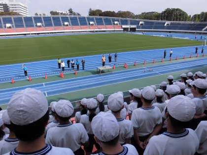 一昨日は雨天のため延期となった連合運動会が駒沢オリンピック記念公園総合運動場陸上競技場を会場に開催されました。烏山小学校の6年生は、この日のために個人種目、代表リレーの練習に励んできました。
