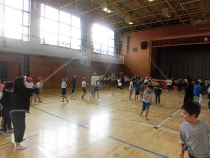 本日、中休みに2・5年生は体育館で長縄をしました。