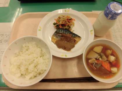 ☆今日は『鯖のごまだれかけ』です。タレは、いりごま すりごま ねりごま さとう みりんを使い甘めのタレにして、魚の上にかけました。ごはんが進む1品にでき子ども達もよく食べていました。