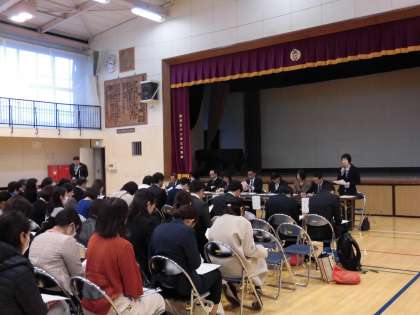 上祖師谷中学校で温知学舎合同研修会を行いました。合同学習確認会議で出された各教科の課題を受けて、小中で検討した授業を実践しました。算数・数学科は2年「一次関数」の授業を行い、ICTを使った導入や、具体物を使った問題提示など、生徒が確実な問題把握ができる工夫がありました。授業後の部会協議では、小中の立場から授業改善に向けて様々な意見を出し合いました。また、講師の先生にもご指導をいただきました。2月は、小学校の授業実践を行います。